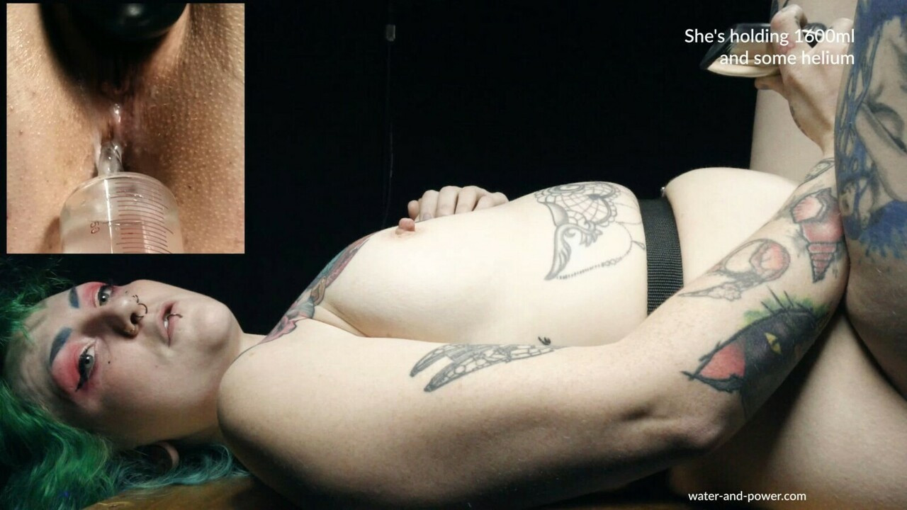 Puddinsnightmare blows enema bubbles from her asshole and becomes our first enema girl to experience helium inflation.